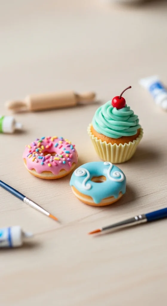 Shape tiny donuts or cupcakes. Use tools for texture.