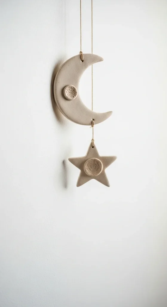 Roll clay flat and cut moon shapes. Add tiny star cutouts.