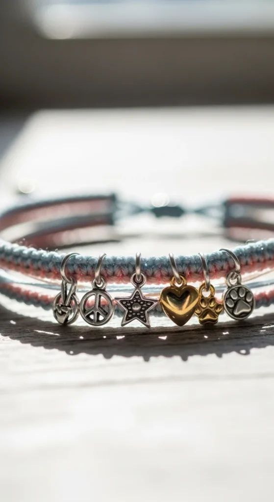 Charms instantly upgrade simple bracelets. Attach small icons like stars, moons, or initials.