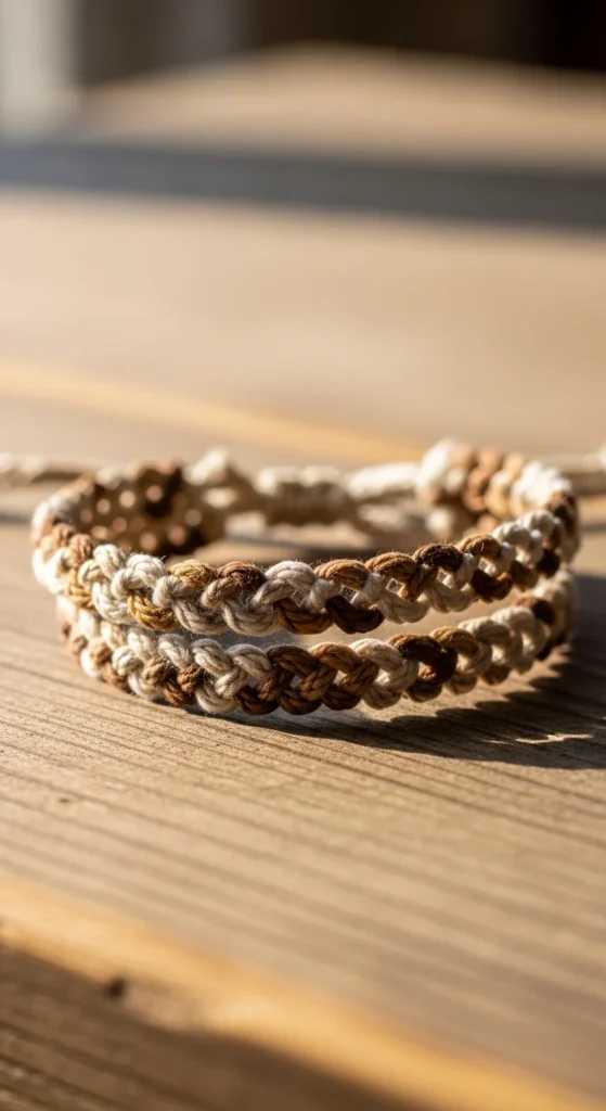Braided cord bracelets are durable and beginner friendly. Basic braids create textured results quickly.
