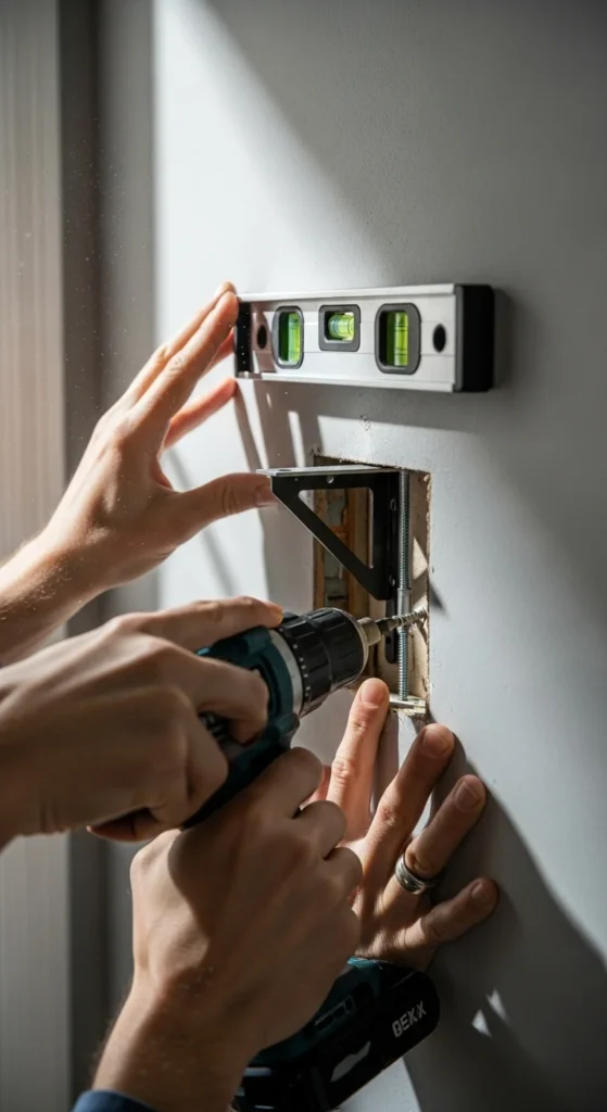 - Secure the bracket or cleat directly into wall studs