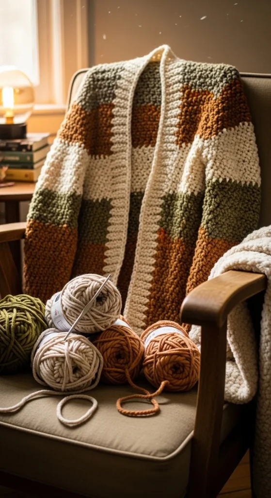 In fact, most beginner-friendly cardigans are made from simple rectangle panels sewn together. No scary curves. No confusing math. Just panels, seams, and cozy texture.