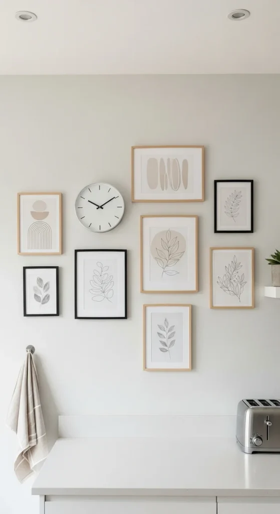Keep wall decor light and minimal so it complements the kitchen instead of overpowering it.