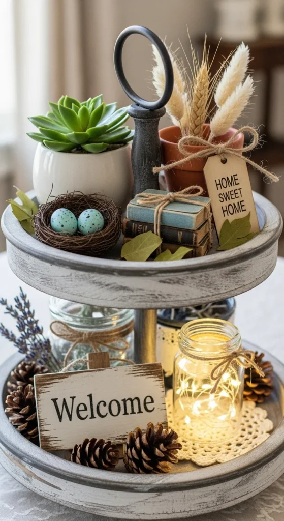 Styling a tiered tray with DIY decor is all about balance, texture, and intention. You don’t need many items—just the right ones, placed thoughtfully. Start with a clear purpose, work from the bottom up, and don’t forget to edit.