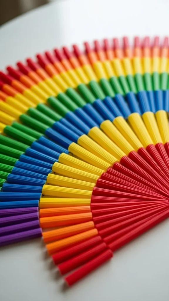 Line up paper straws in rainbow order and tape them together at one end. Spread them into a fan shape.
