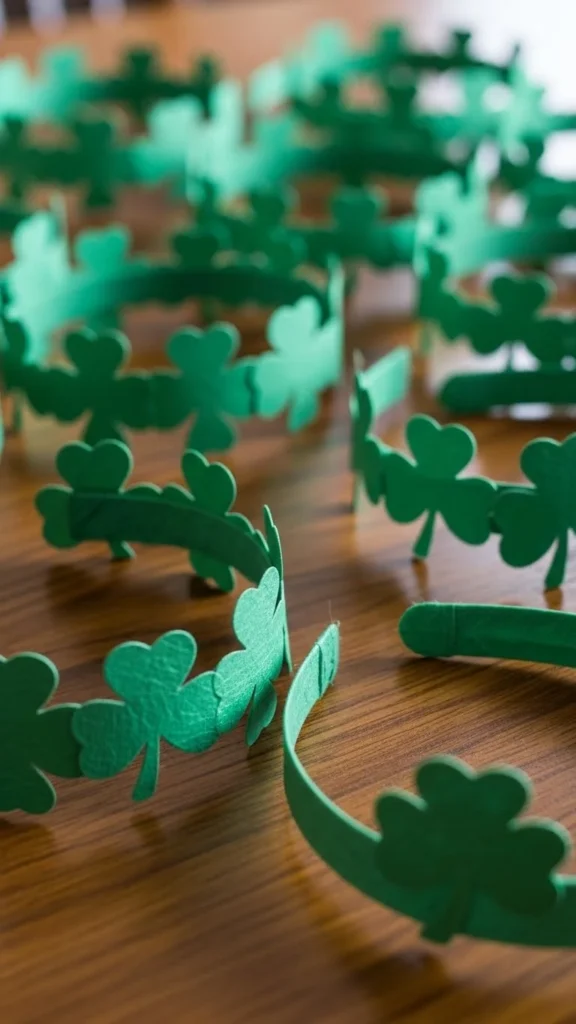 Cut paper strips to fit heads and glue shamrocks along the front.
