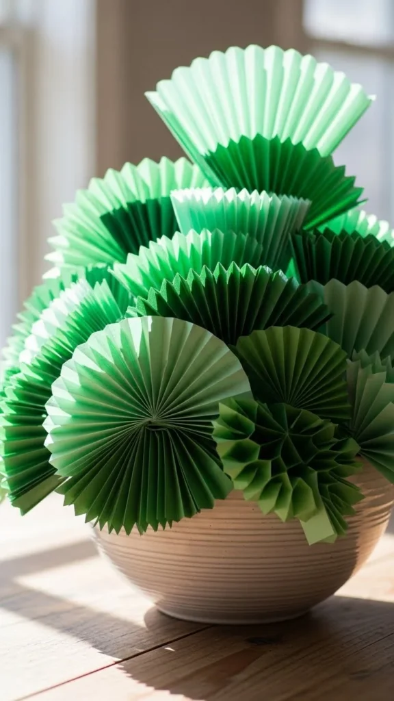 Fold paper fans and place them upright inside a bowl. This adds shape and visual interest without much effort.