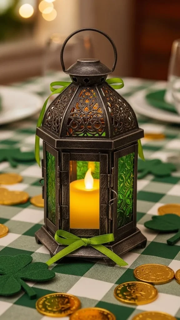 Add green paper or faux clovers around a lantern. This creates a calm and balanced look.