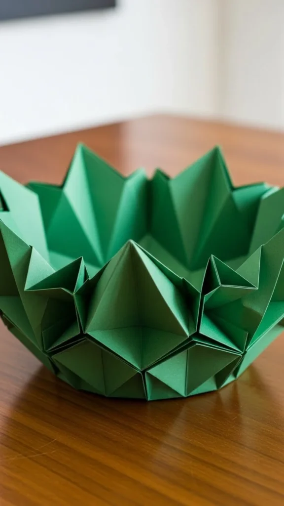 Fold paper into shapes and arrange them upright inside a bowl.