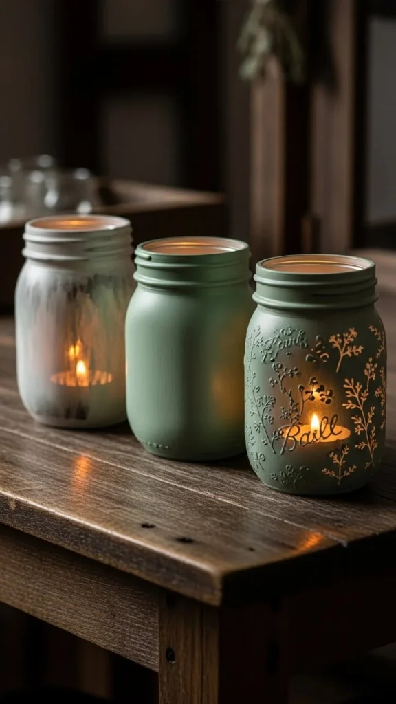 Mason jars are affordable and easy to find. Paint them using acrylic paint mixed with a bit of water for a soft finish. One coat keeps them slightly transparent, which looks great when light shines through. Let them dry upside down to avoid drips.