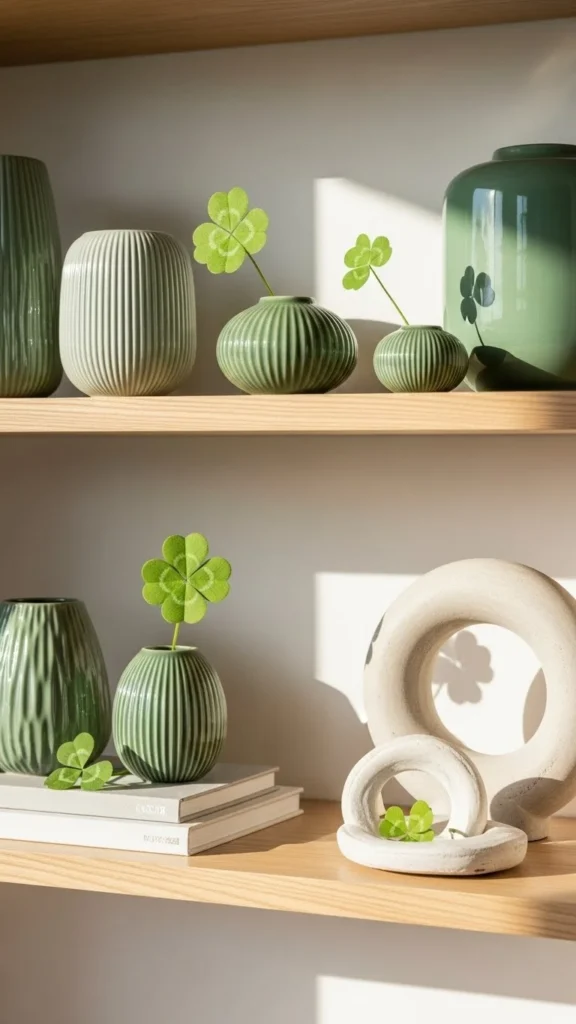 21. Green Shelf Styling with Small Accents