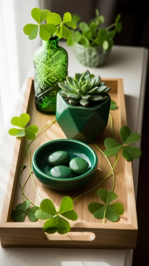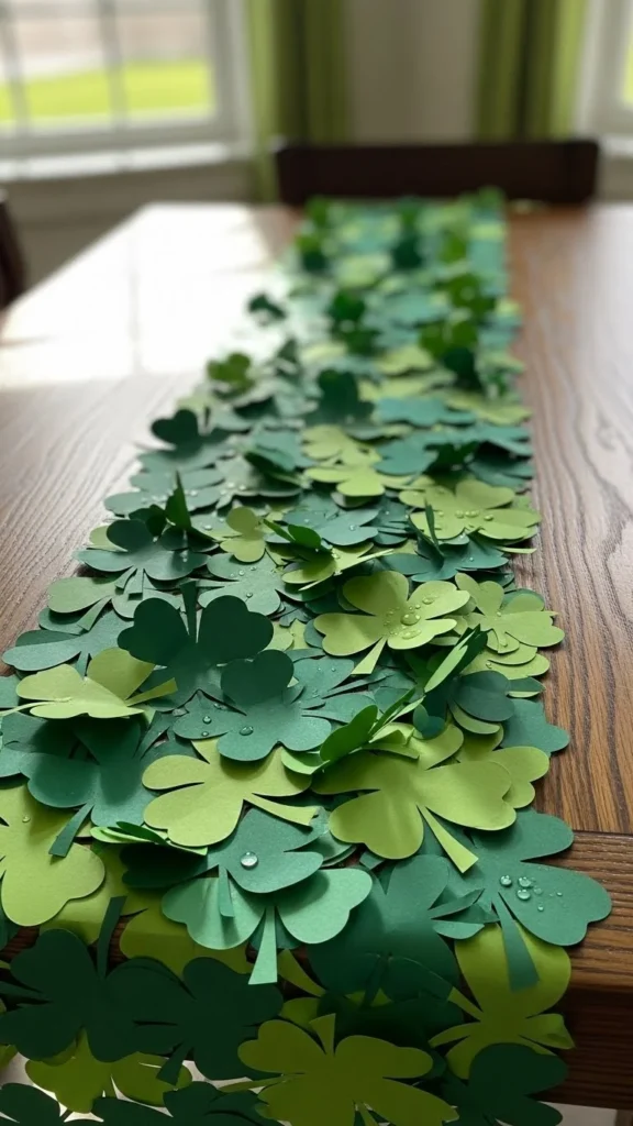 Lay faux greenery along the table center. Add small clovers or coins between sections. This avoids buying a runner.