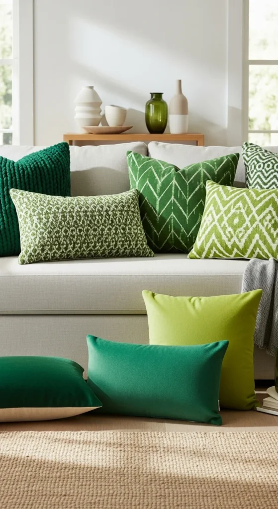 1. Bold Green Accent Pillows