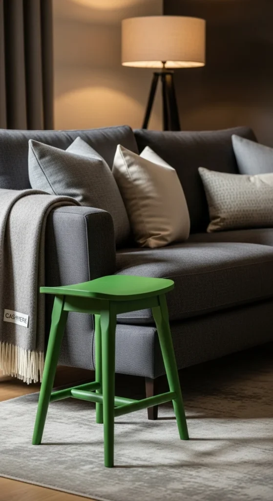 Paint a thrifted stool green for function and color.
