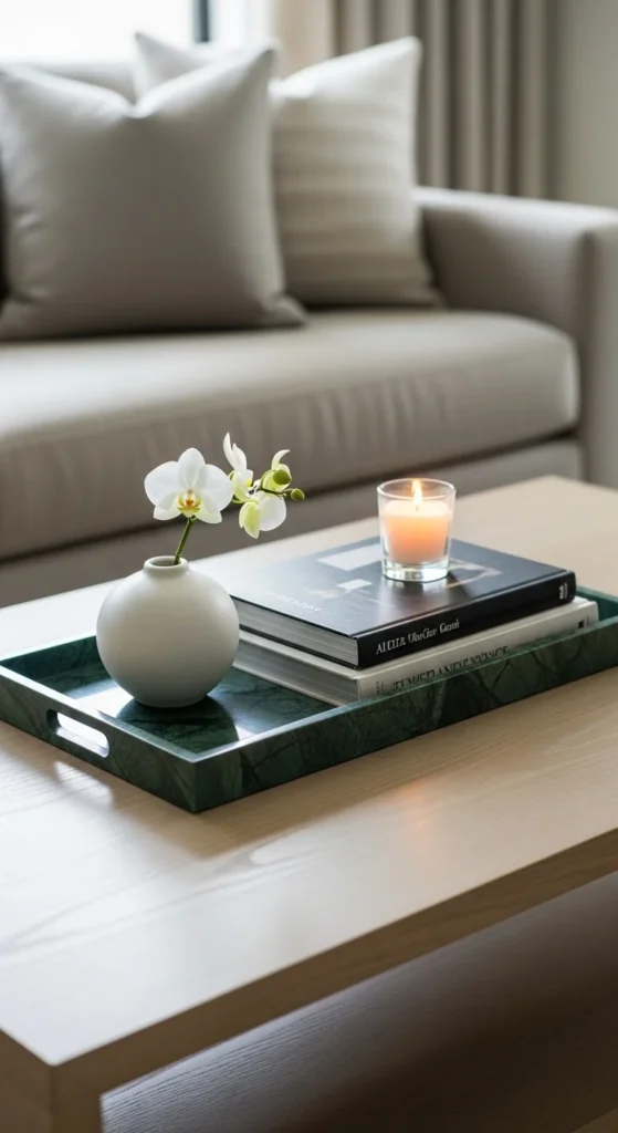 5. Green Tray Coffee Table Styling