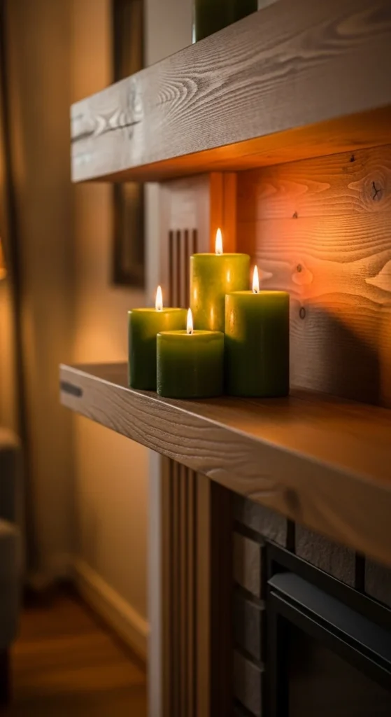 Group candles of varying heights. Stick to one green tone. Space them evenly to keep the display clean.
