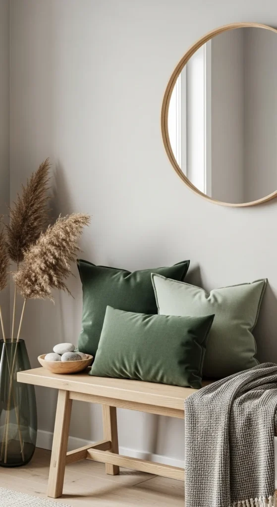 9. Green Entryway Bench Pillows