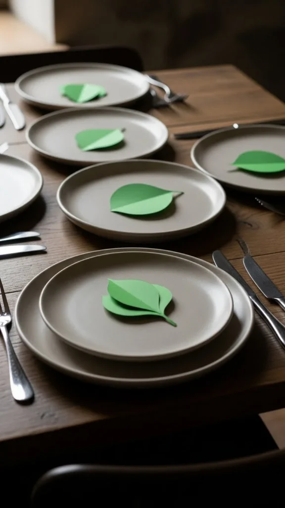 Place a small green paper accent on each plate. This simple detail adds color without effort. It works well when you want a clean and calm table style.