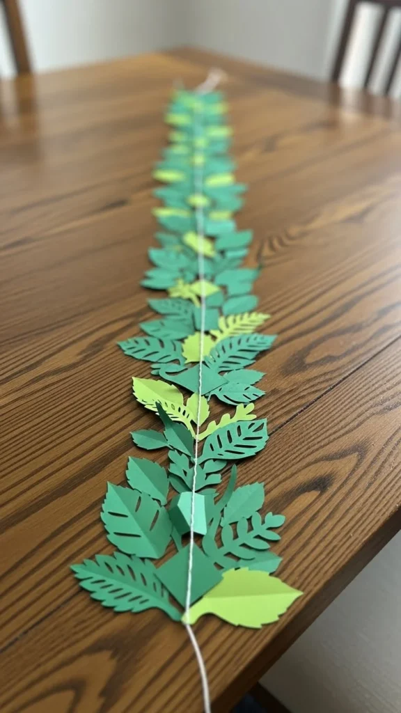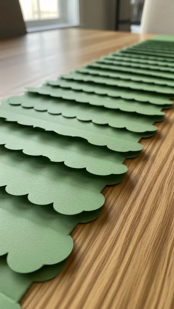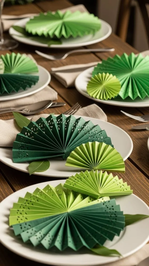 Create paper fans using green paper and lay them flat along the runner. This adds texture without adding height. Paper fans are easy to make and store flat afterward. They work well for modern or casual table styles.