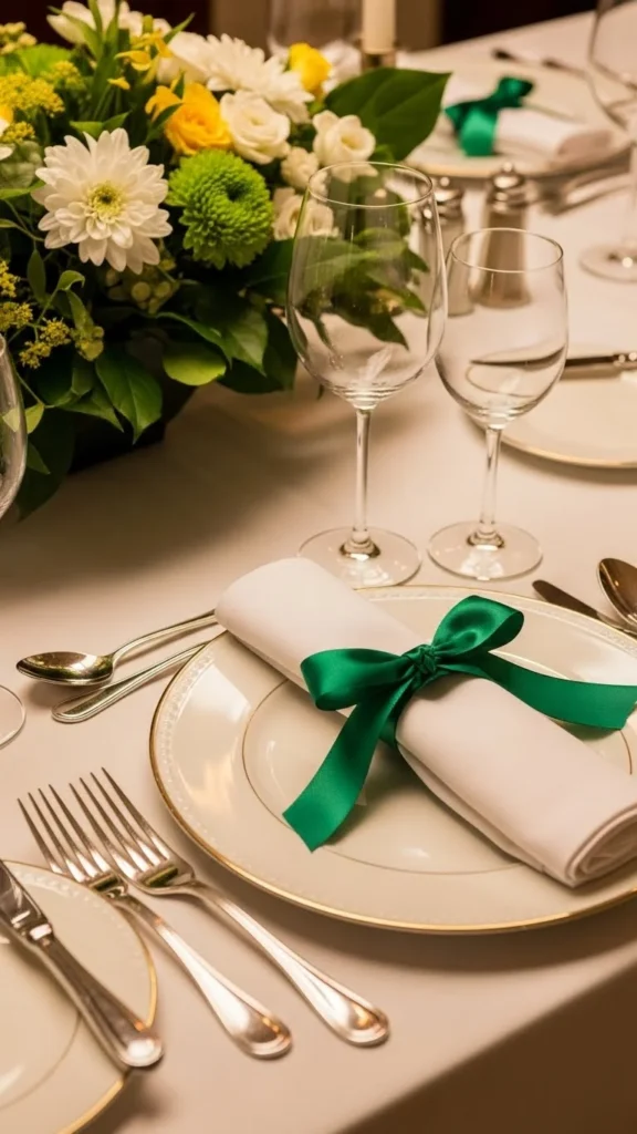 9. Green Ribbon Place Settings