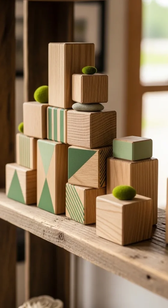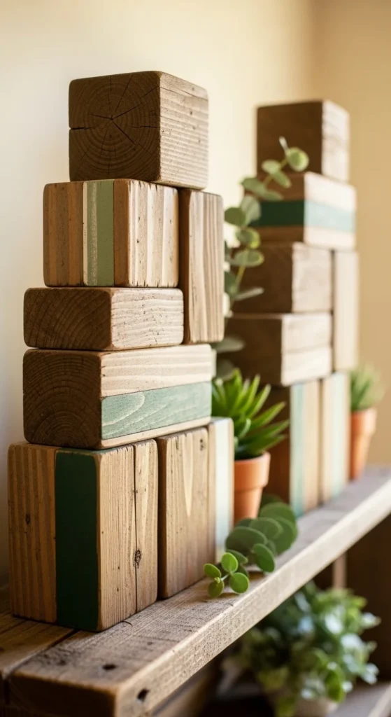 Use blocks to form simple shapes. Paint lightly. Stack or line them up for flexible decor.