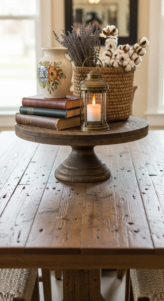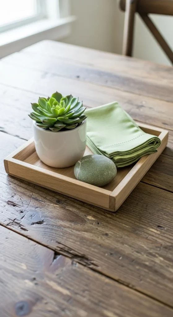 Use a thrifted tray or build a simple one from boards. Paint lightly and distress edges. Keep the center neutral so it works beyond the holiday. Style with greenery or candles. This tray adds function and seasonal charm without heavy effort.