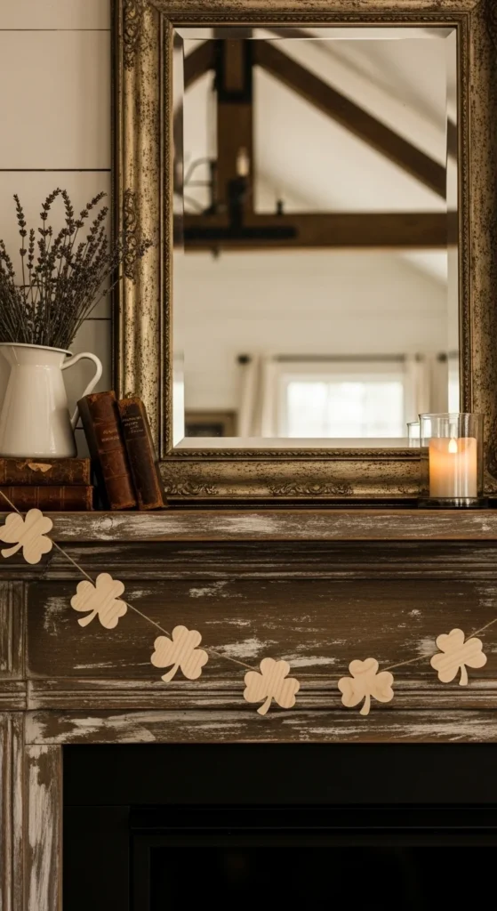 Cut small clovers from thin wood and drill tiny holes. String them with twine for a relaxed look. Leave the wood raw or apply a light paint wash. This garland works well across mantels, shelves, or stair rails. It stores flat and can be reused each year. Scrap wood makes this project very affordable.